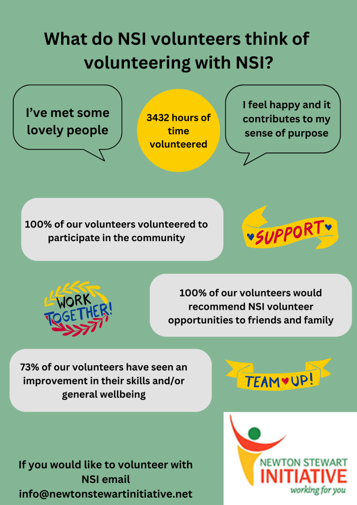 Opened in 2017 in the old Tourist Information building, the NSI Community Shop is the cornerstone of Newton Stewart Initiative and a central part of our community. We take in donations of clothes, books, bric-a-brac and other second-hand items. Working alongside the foodbank we offer clothes in exchange for tokens and Freebie Friday is a regular event!
