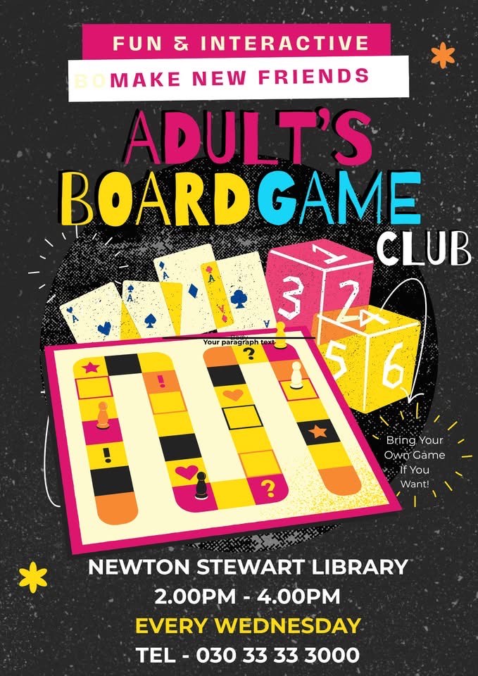 Pop along to Newton Stewart library every Wednesday between 2-4pm for their adult boards game club